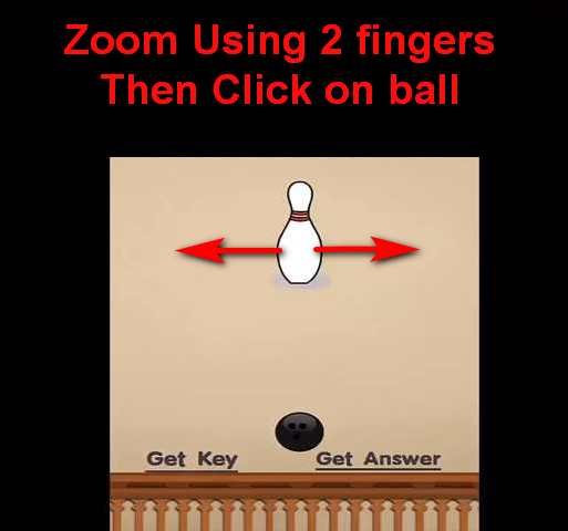 Hint: Zoom the pin Using 2 fingers to make it large Then Click on the ball to hit it.