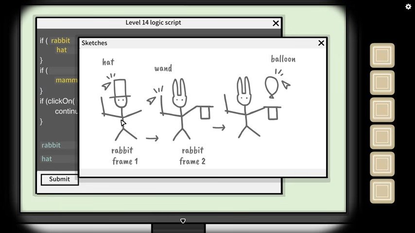 - Drop the rabbit into the magician’s hat and tap Mr. Rabbit’s head.
