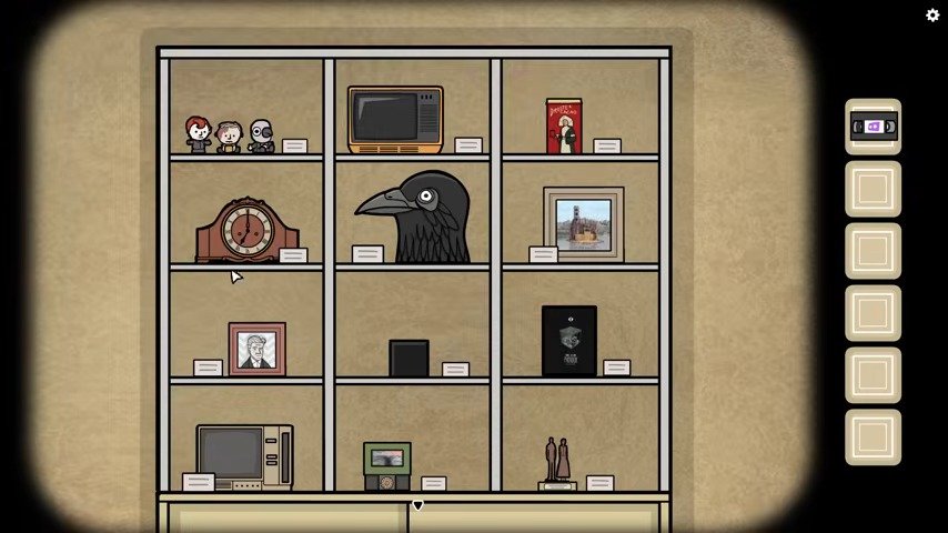 - Crow Mask (8): Location: Hanging on the wall next to the clock. Interaction: Tap the crow’s eye → An “8” appears in its pupil → Third digit: 8.