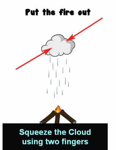 Squeeze the cloud with two fingers and make water spill to put out the fire.