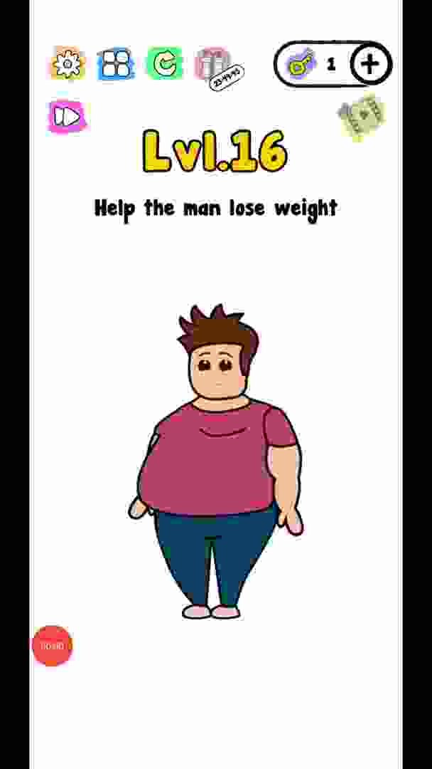 Hold the man with your finger, move him left and right 7-8 times to make him lose weight.