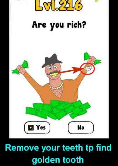 Hint: Try removing your teeth by dragging teeth, you will find golden teeth behind those. that means you are rich.