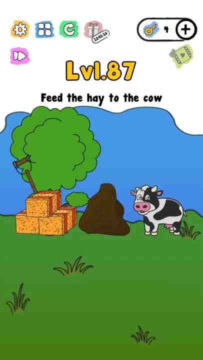 - Trick Me Level 87 Feed the hay to the cow